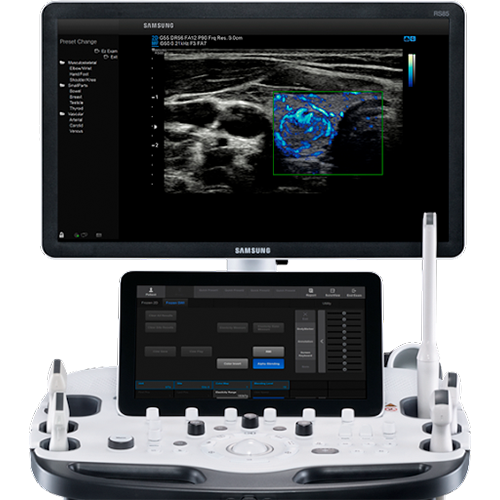 С помощью УЗИ Samsung Medison RS85 Prestige изображения получаются четкими и однородными, без зернистости и артефактов. Он позволяет проводить расширенные исследования сосудистой системы с качественным отображением интенсивности и объема кровотока. А с подключением энергетического допплера визуализируются даже периферические сосуды.